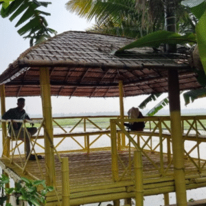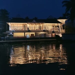 As dusk approaches, watch the sunset unfold across the serene front lake view, where the sky melts into shades of orange and pink over Vembanad’s still waters.