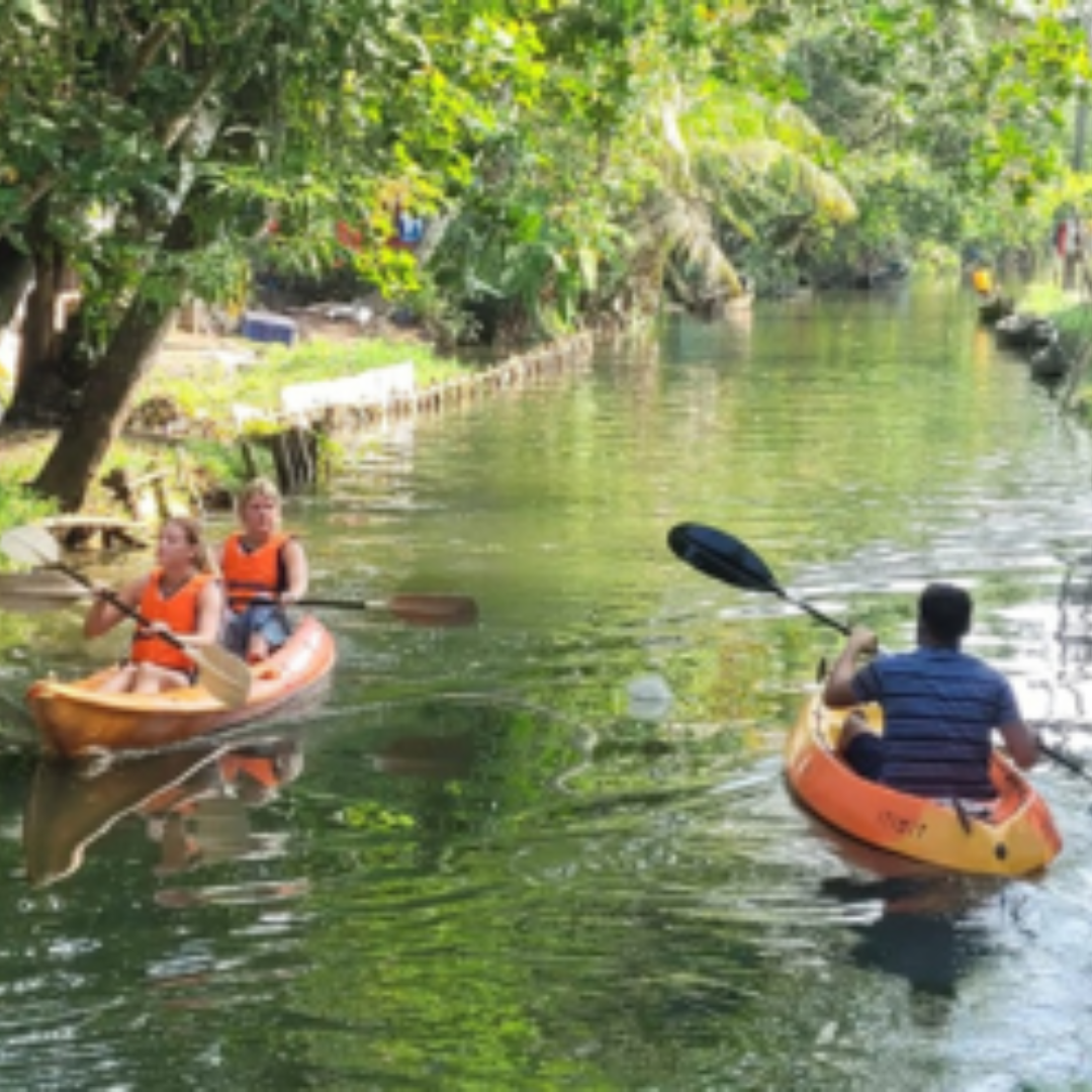 Book nowKayaking - Paddle through the tranquil backwaters of Punnamada Lake, where calm waters mirror the lush green palms and vibrant village life of Alleppey. Kayaking here is a serene yet thrilling way to explore narrow canals, witness local fishermen at work, and experience Kerala’s natural beauty up close. Whether you’re seeking adventure or quiet reflection, every stroke on Punnamada Lake offers a moment of peace and connection with nature.